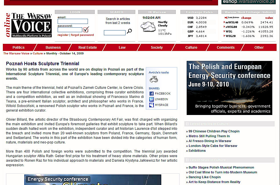- The 16th International Sculpture Triennial, Competition Exhibition, Poznan, POLAND. Honourable Mention