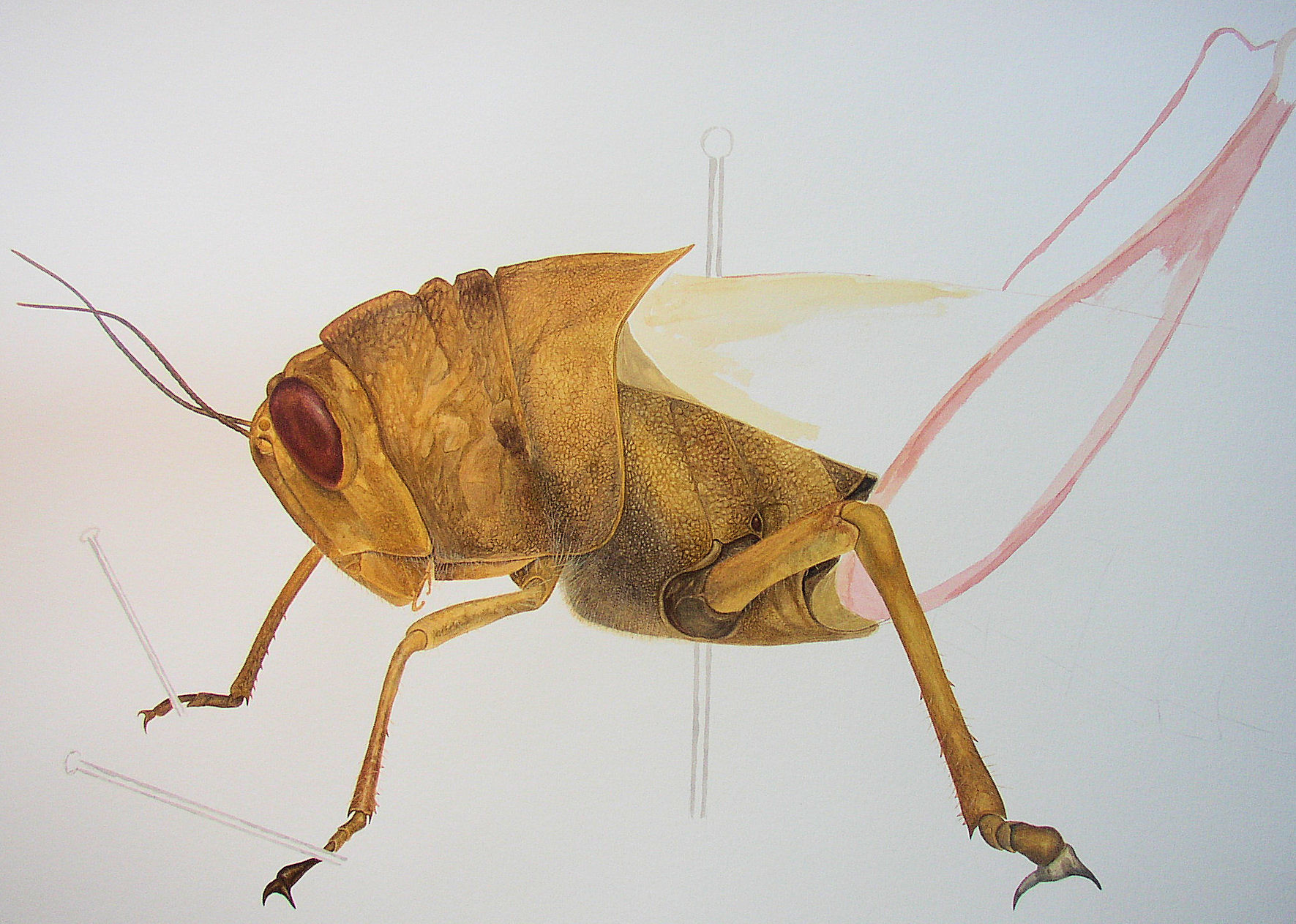 Adult female- Anacridium aegyptium, Watercolor, Gouache, Pencil on paper,120.5x70cm, 2007